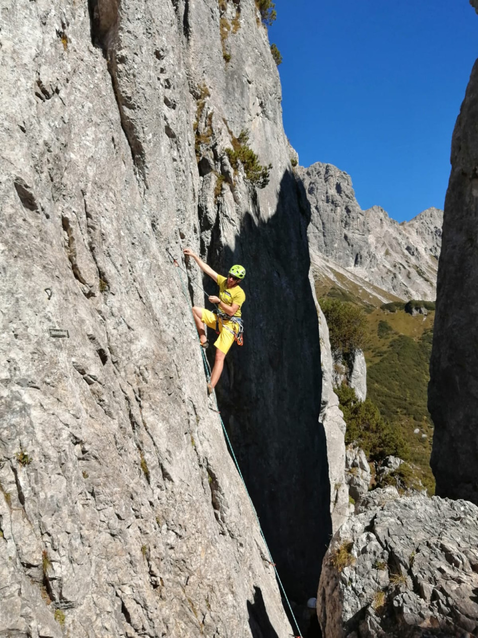 Betreutes Kletterwochenende im Klettergarten für Vereinsmitglieder auf der Hofpürglhütte.